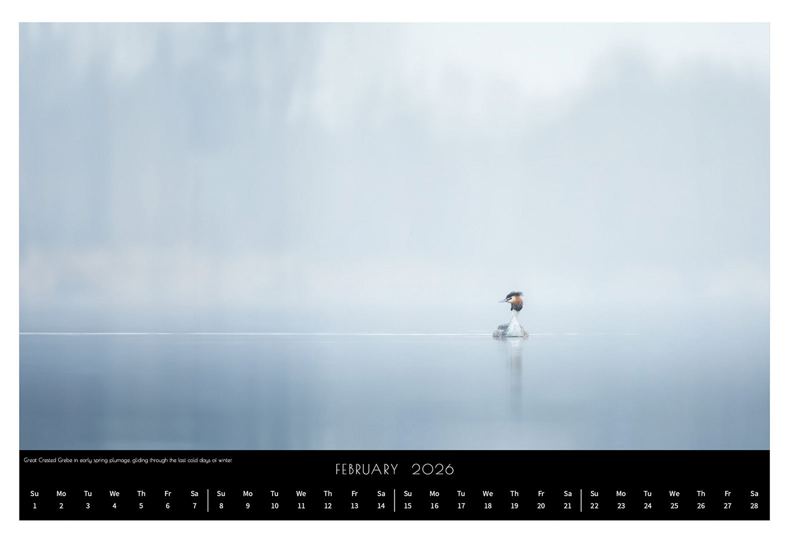 From misty mornings with Great Crested Grebes to intimate encounters with wolves, rabbits, and Northern Gannets, each month highlights a unique story from nature, captured with patience, respect, and a deep love for the wild.